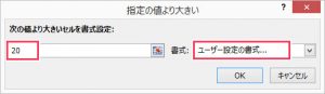 「20」と入力し、「ユーザー設定の書式」を選択します。