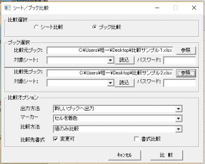 比較するファイルの選択ダイアログが現れるので、比較したいファイルを選び、比較ボタンをクリックします。