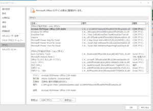 Excelのオプションダイアログが表示されたら、アドインを選択し、一番下にある管理からCOMアドインを選択します。