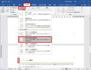 ↑ 3ページの先頭にカーソルを移動し、「レイアウト」タブ → 「区切り」ボタン → 「セクション区切り」の「現在の位置から開始」をクリックします。ワード 2013/2010では、「ページレイアウト」タブから操作します 画面に変化はありませんが、セクション区切りが挿入されます。