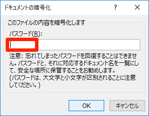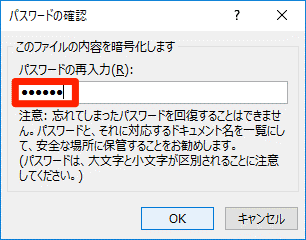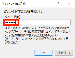 [ドキュメントの暗号化]ダイアログボックスが表示されました。任意のパスワードを入力して[OK]ボタンをクリックします。