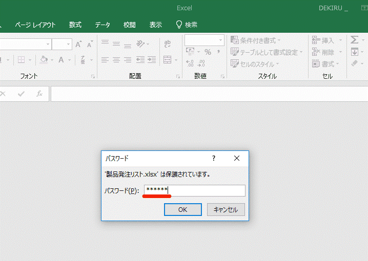 Excelファイルを再び開こうとすると、[パスワード]ダイアログボックスが表示されました。正しいパスワードを入力しない限り、このファイルの内容は確認できません。