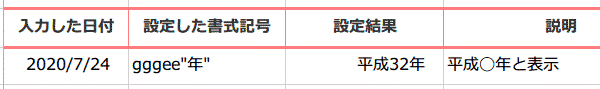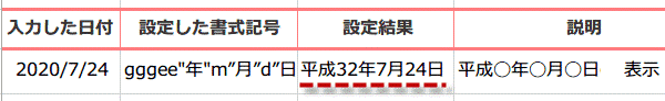 それでは、西暦表示の日付「2020/7/24」を平成32年7月24日と表示してみましょう