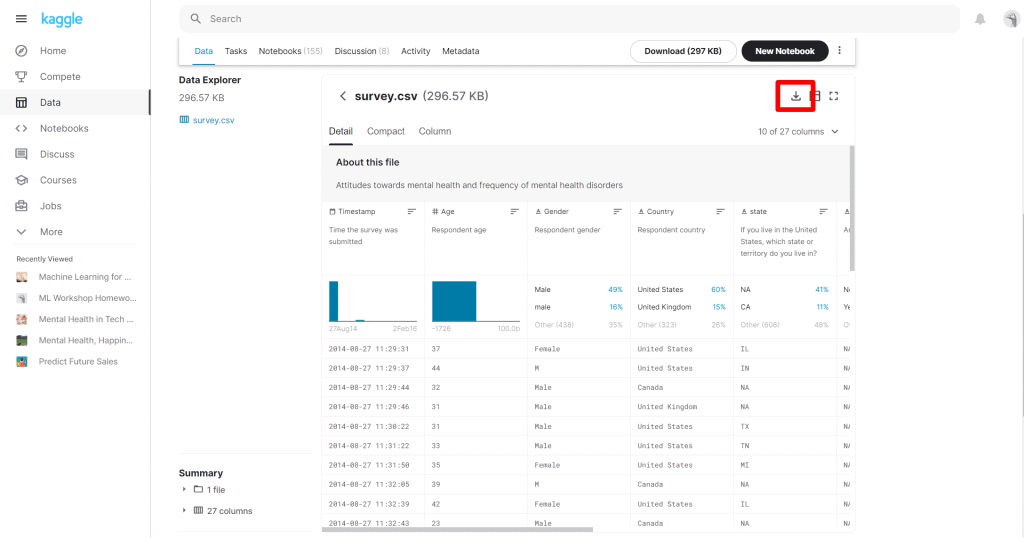 今回は「Mental Health in Tech Survey」というテーマのダウンロードしていきます。