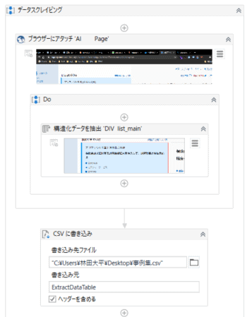あとは、このフローを実行すればCSVファイルが勝手にできあがります