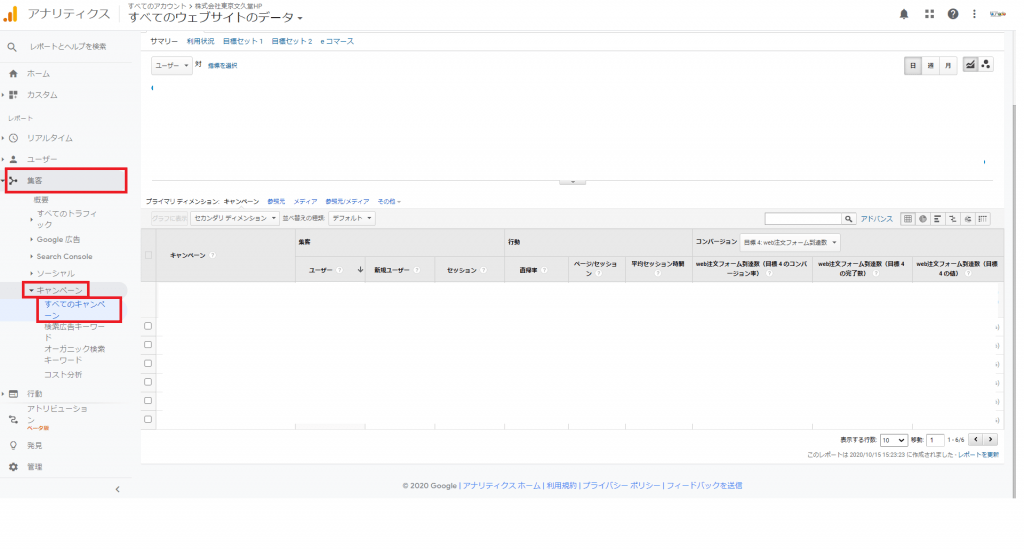 「集客」⇒「キャンペーン」⇒「すべてのキャンペーン」を開きます。