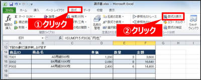 「数式」タブをクリックし、「数式の表示」をクリックする