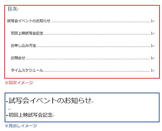 目次の自動作成イメージになります。