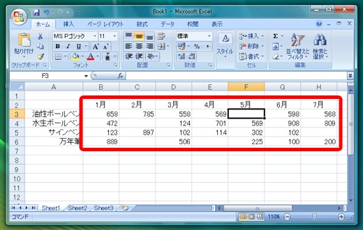 空白が所々にある表です。空白のデータを穴埋めのように入力します。