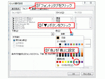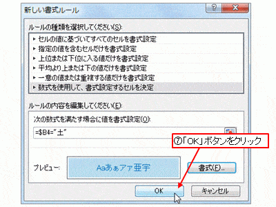 ○土曜日の場合の書式設定(Excel 2007 以降の場合)
