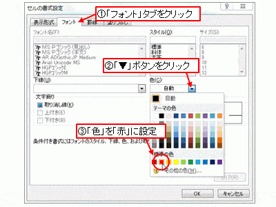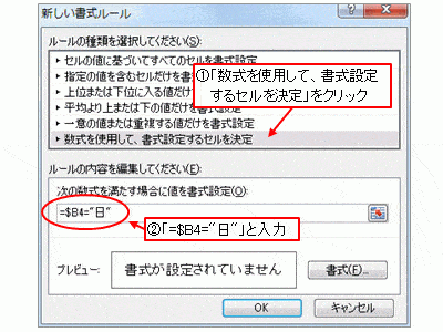 ○日曜日の場合の書式設定(Excel 2007 以降の場合)