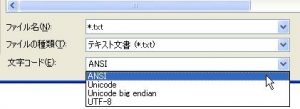 ※なおメモ帳では「UTF-8」も選択できますが、必ずBOM付きとなるので注意して下さい。UTF-8におけるBOMというのは文字コードの判定の時にUnicodeかどうかを識別できるようにファイルの先頭に挿入される短いデータのことです。