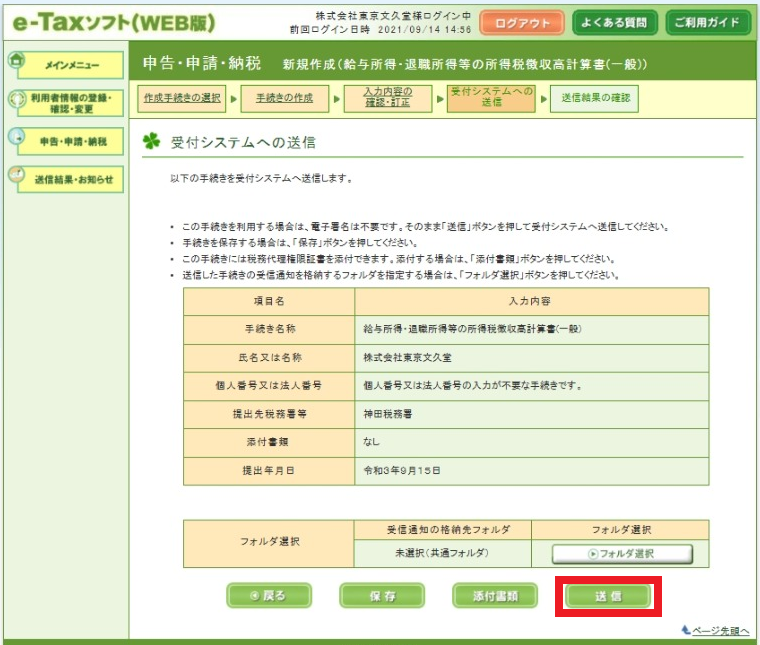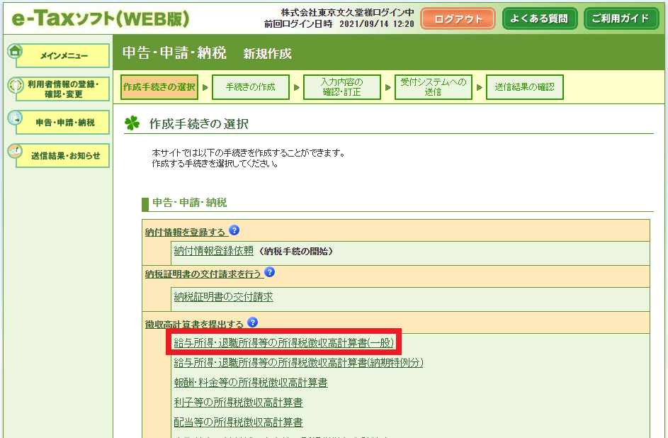 ③「徴収高計算書を提出する」から「給与所得・退職所得等の所得税徴収高計算書(一般)」をクリック