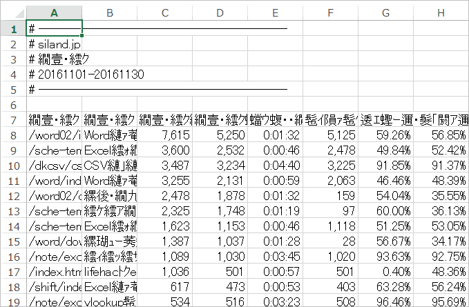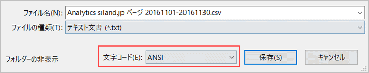 インターネット上からダウンロードしたCSVファイルを開くと、稀に文字化けする場合があります。(Googleアナリティクスから出力したCSVファイルは確実に文字化けします。)