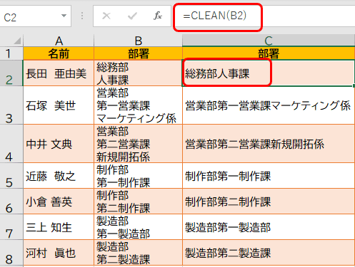 見やすくはなりますが、いざデータとして利用したいときには、邪魔になります。そんな時に便利なのがCLEAN関数です。