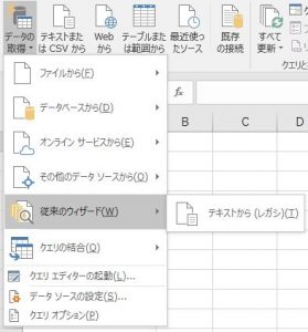 EXCEL2016でテキストファイルを挿入する際に、「テキストファイルウィザード」が出てきません。タブ区切りのテキストファイルが全部1列で読み込まれて、「00123」のような0詰め番号が数値の「123」になってしまう「0落ち」現象が起きてしまいます。
