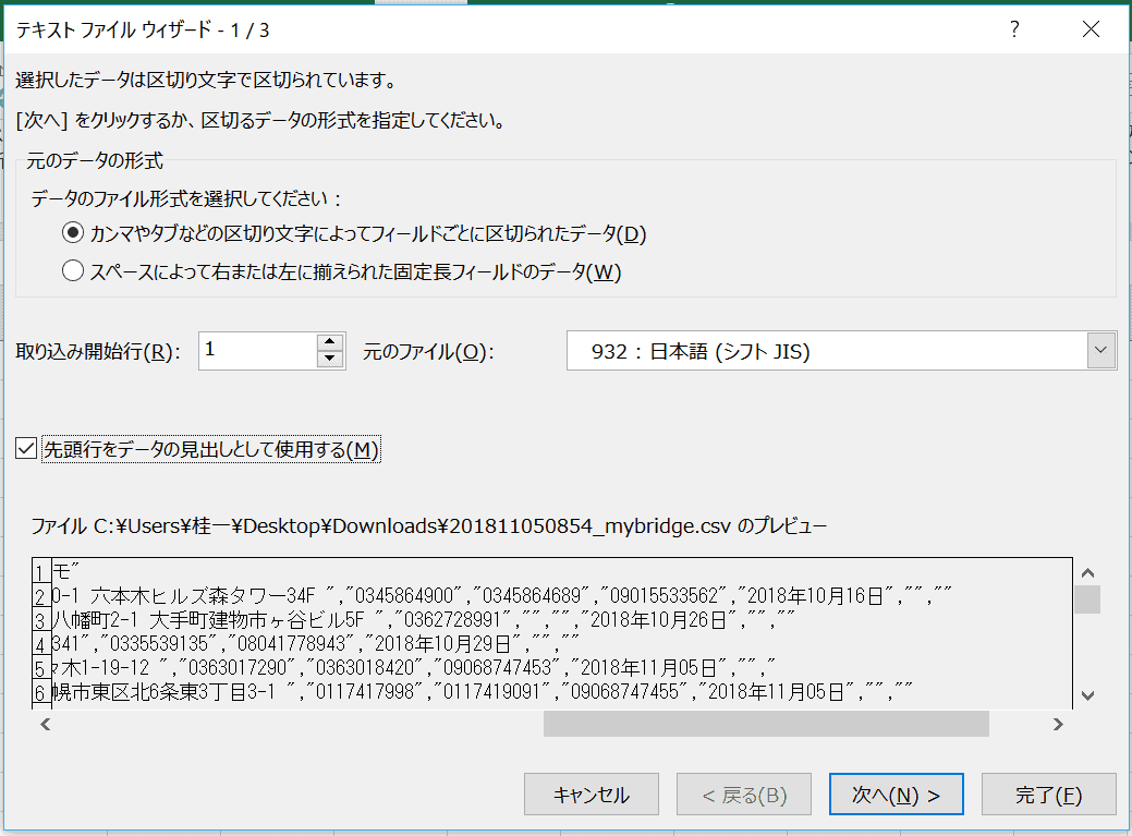 そうすると、従来通りのテキスト読み込みが出来るようになります。