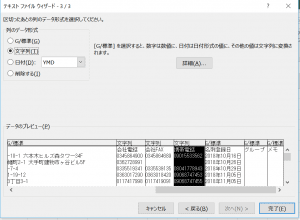 「0落ち」しないように、列のデータ形式を「文字列」にします。