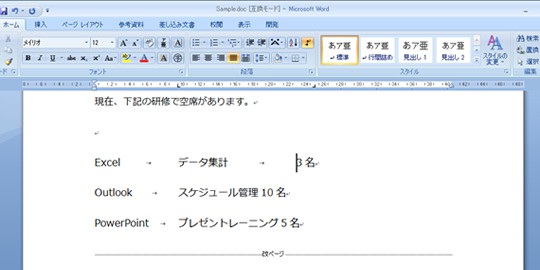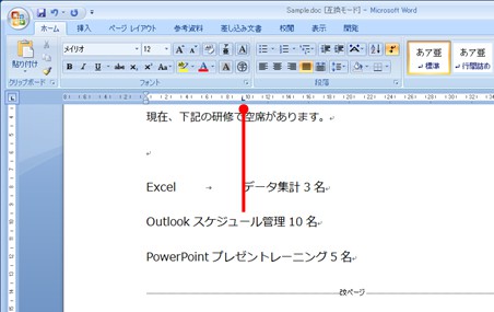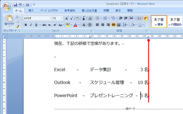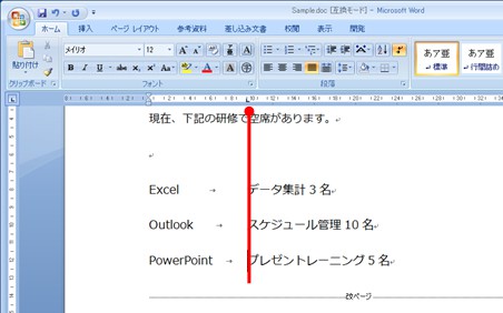 Step2で決めた位置に文字の開始位置を移動して、ExcelやOutlookなどの製品名の後ろに間隔を空けます。