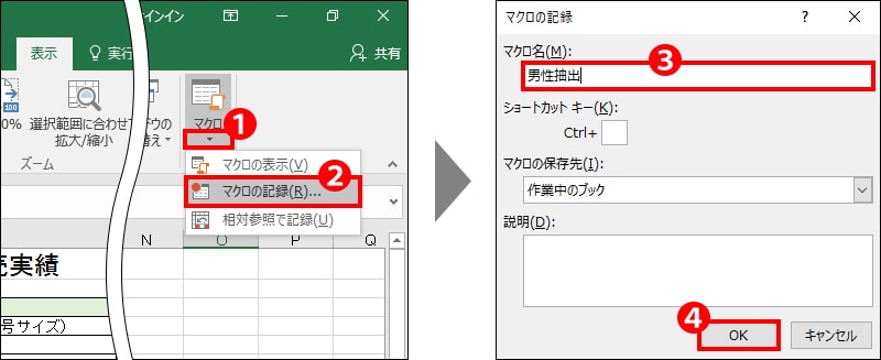 マクロはいったん記録をスタートすると、以降の操作がすべて記録されます。
