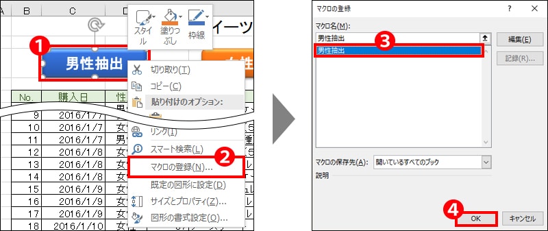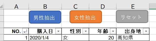 マクロ登録後の図形(ボタン)は、クリックするとマクロが実行されるようになります。