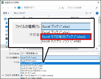 【ポイント】保存のときは、ファイルの種類を「マクロ有効ブック」に