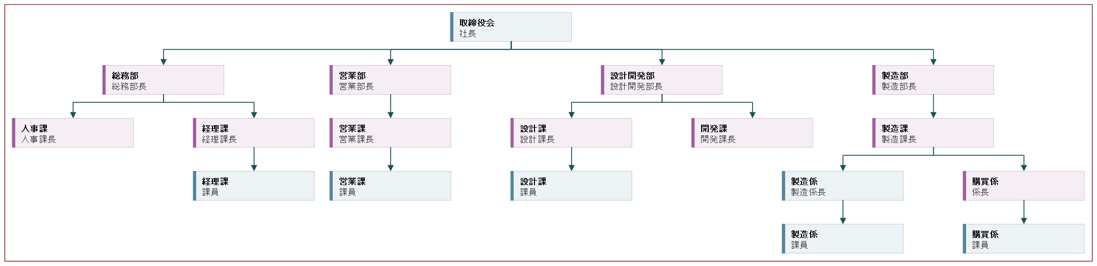 テーブルを編集して、組織図の更新をクリックすると下図のようになります。
