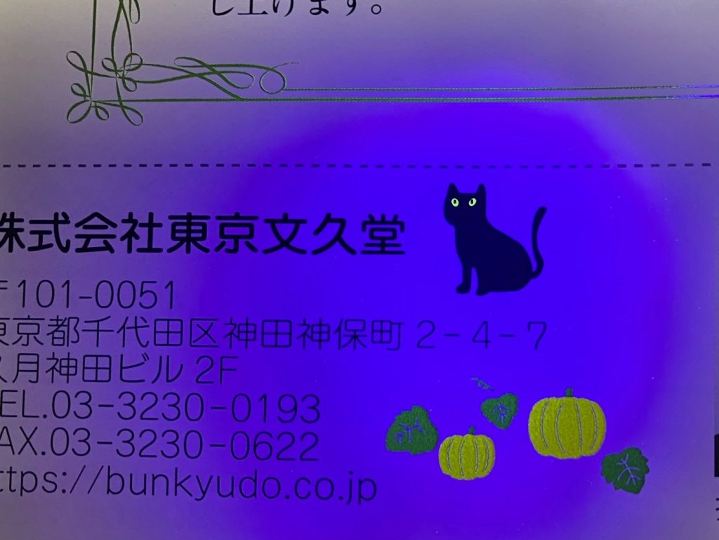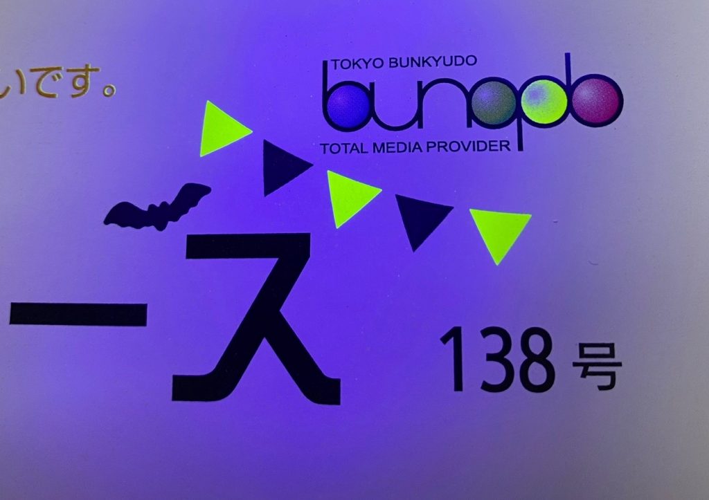 ホームトピックス 東京文久堂News 2021年10月号 2025年12月2日 2021年10月4日 1 min 572 views 今月のNewsをお届けします! 文久堂ニュース10月号_宛名面ダウンロード 10月のニュースではネオンイエロートナーを使用し作成しました!ネオンイエロートナーは通常のイエロートナーよりも鮮やかな黄色を表現できブラックライトに当てると光ります。※今回ニュースで使用しているイエロートナーの部分はネオンイエローに置換えています。 画面だと分かりずらいと思いますので実際にブラックライトを当ててみました。 イラストの光っている部分が分かりますでしょうか?ブラックライト自体持っている方が少ないとは思いますがお持ちの方にはぜひ試していただきたいです!ハロウィンやクリスマスや年賀状等、イベント等のDMやチラシに使用してみたいと思っていただいた方、ぜひお気軽にお問合せくださいませ。 お問合せはこちらから コチラの記事も合わせて ネオンカラー(蛍光色)印刷 各営業担当者の記事のご紹介 文久堂ニュース10月号_01ダウンロード 文久堂ニュース10月号_02ダウンロード 文久堂ニュース10月号_03ダウンロード