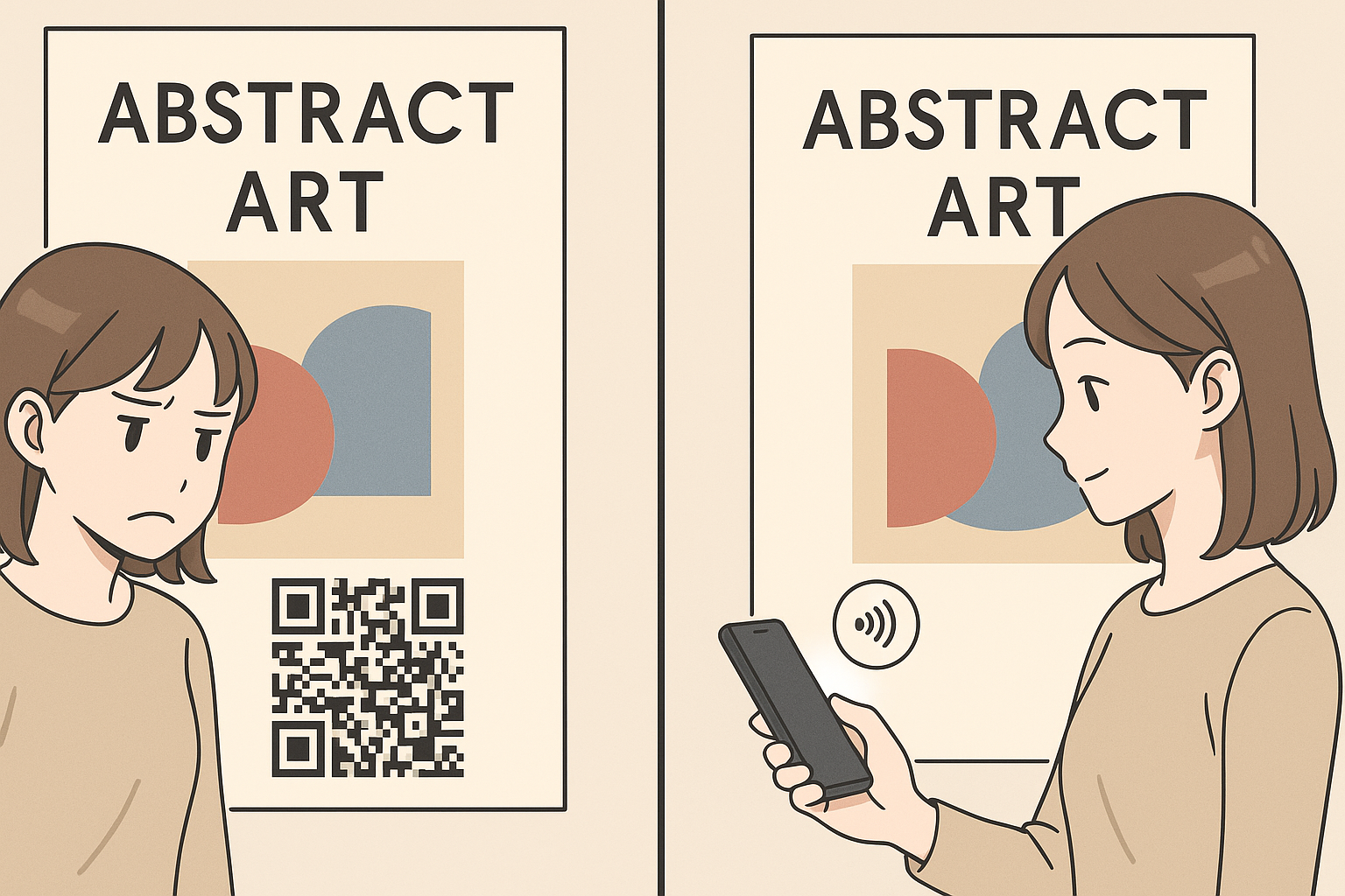 NFCタグは目に見えないため、「ここにタップポイントがある」ことを来場者に分かりやすく伝える工夫が不可欠です。NFCの公式ロゴ(Nマーク)や、電波をイメージさせるアイコンを配置し 、「スマホをかざして限定動画をGET!」といった、具体的で魅力的なアクションを促す言葉(CTA)を添えましょう。