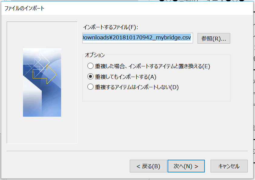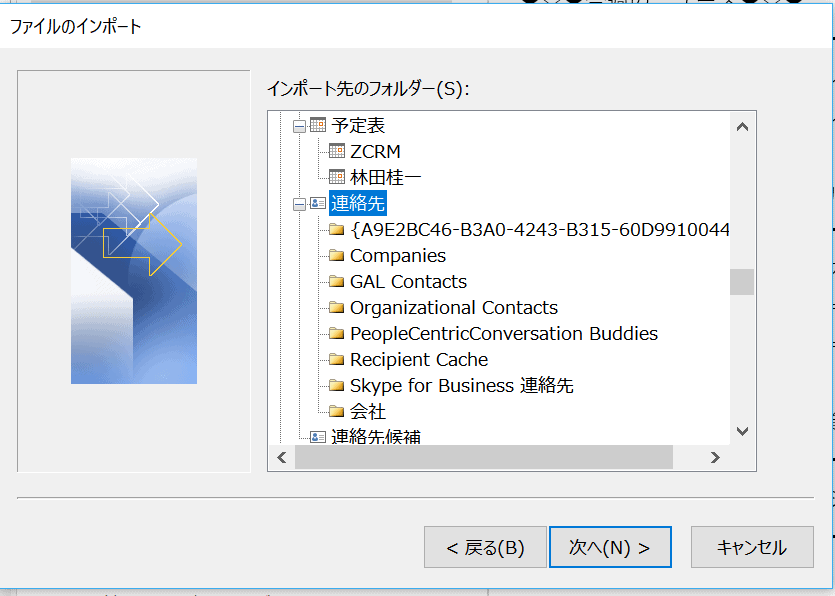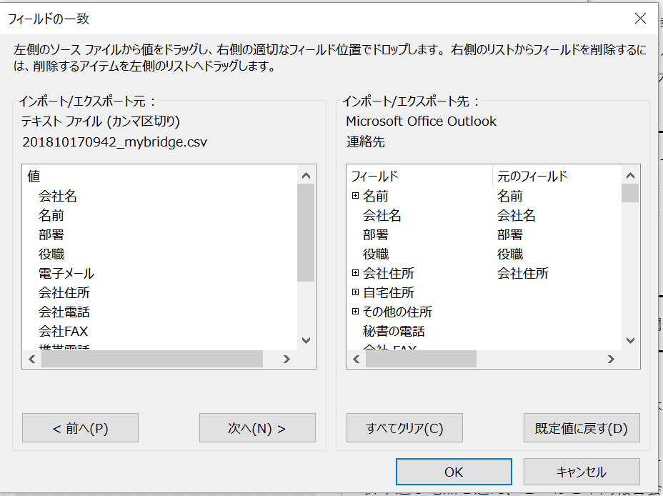 ○無料名刺管理アプリmyBridgeのデータを、Outlookの連絡先にインポートします。