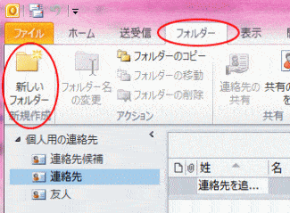 ◆Outlookを起動して、連絡先を表示して[連絡先]を選択します。