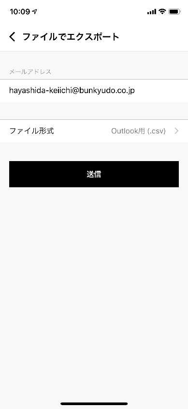 ファイル形式をOutlook用(.csv)にして、送信します。
