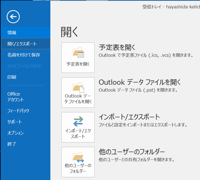 [ファイル]タブの[開く]から[インポート]をクリックします。
