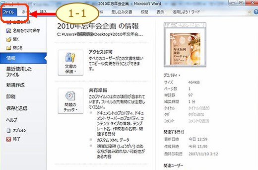 1.リボン インターフェイスの [ファイル] を選択し、Microsoft Office Backstage ビューを開きます。(1-1)