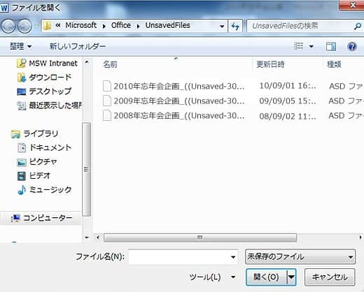 必死になって作成した文書ですが、「保存しますか?」のメッセージに、うっかりと [いいえ] をクリックしてしまって泣きたくなったことはありませんでしょうか?