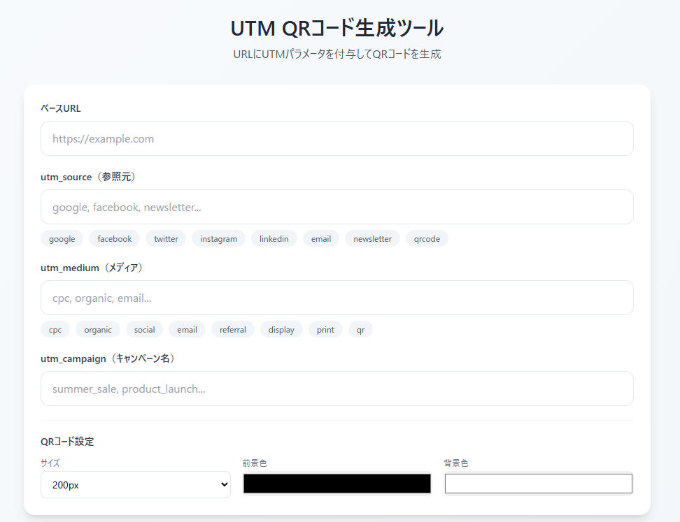 URLを入力したらQRコードを作成するアプリを作成できますか?その前に、そのURLにsource、medium、campaignの3つのパラメータを付与するような仕組みも欲しいです。