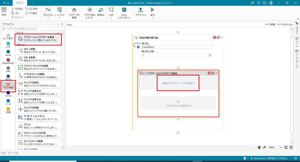 自動化するアプリを指定する