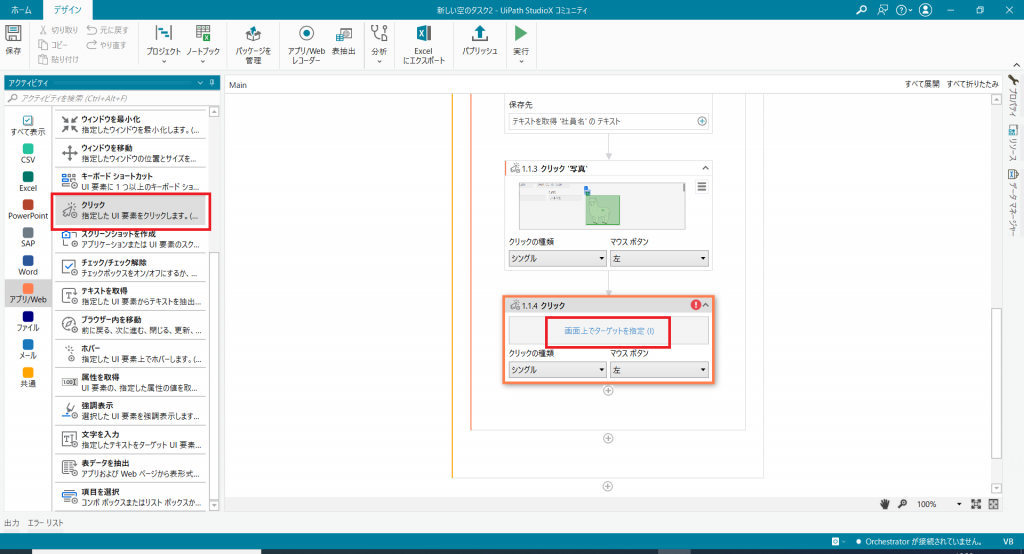 クリック→画面上でターゲットを指定