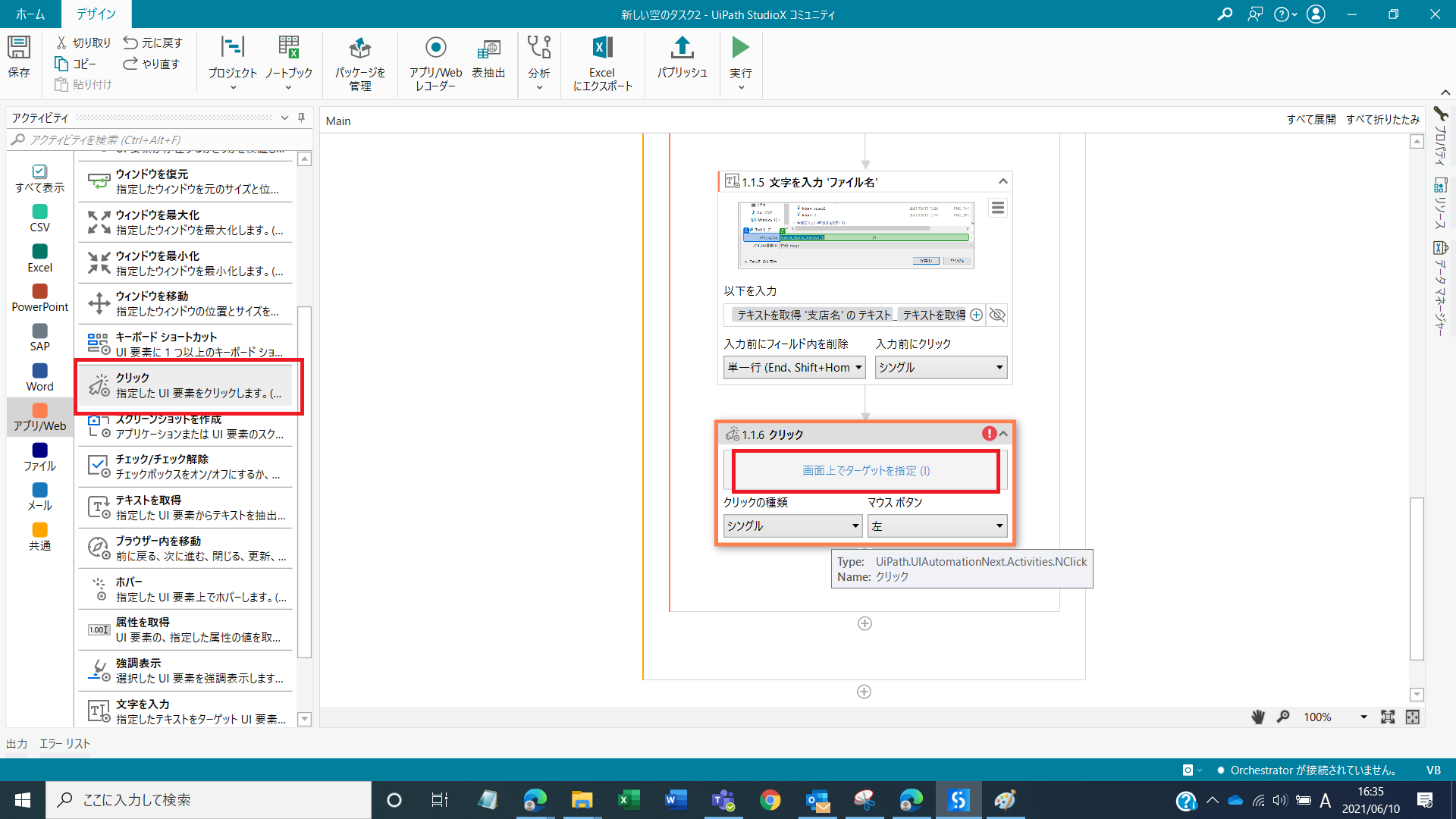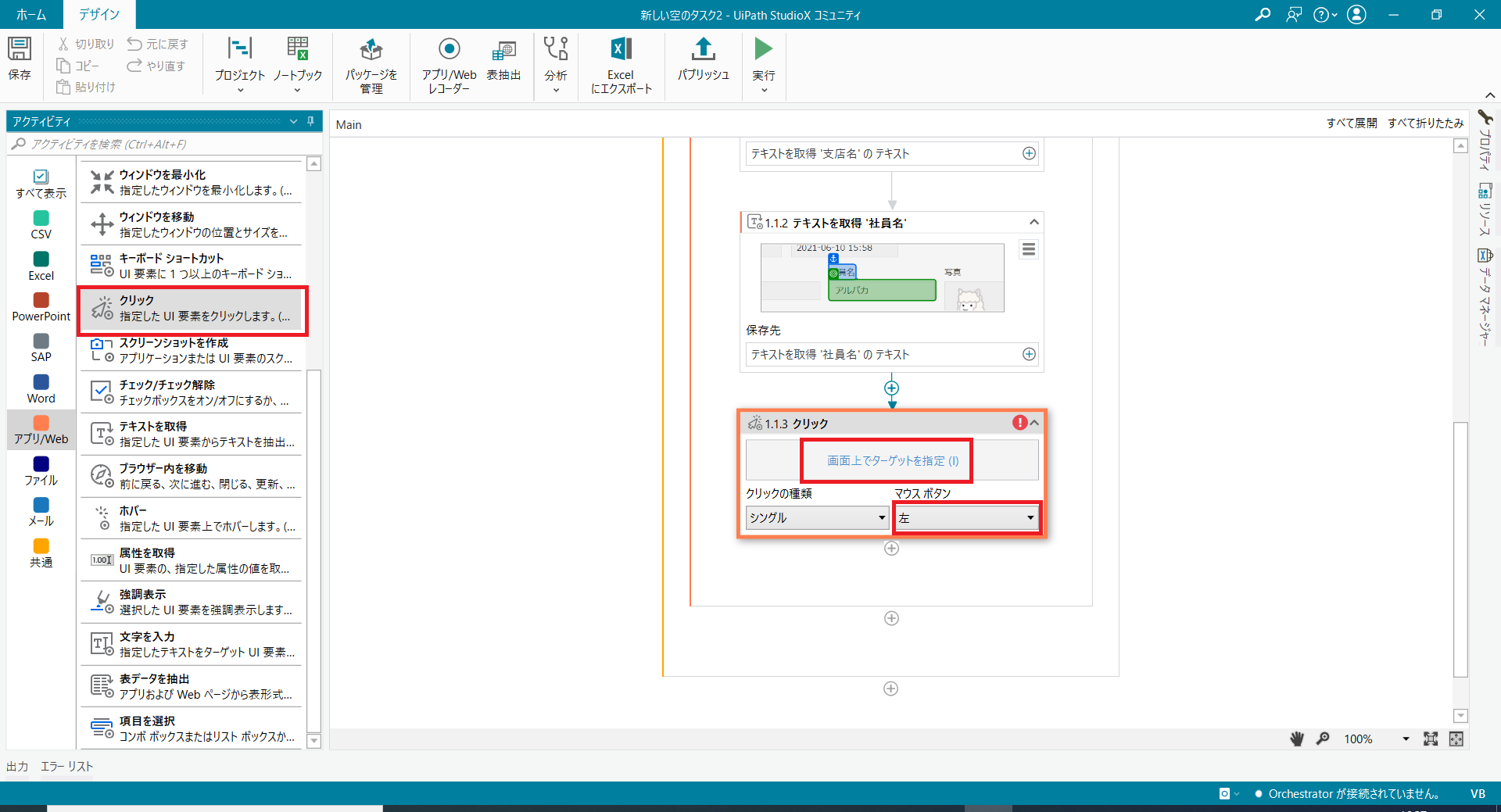 実行ボタンをクリックするとこのような操作をStudioXがしてくれます。