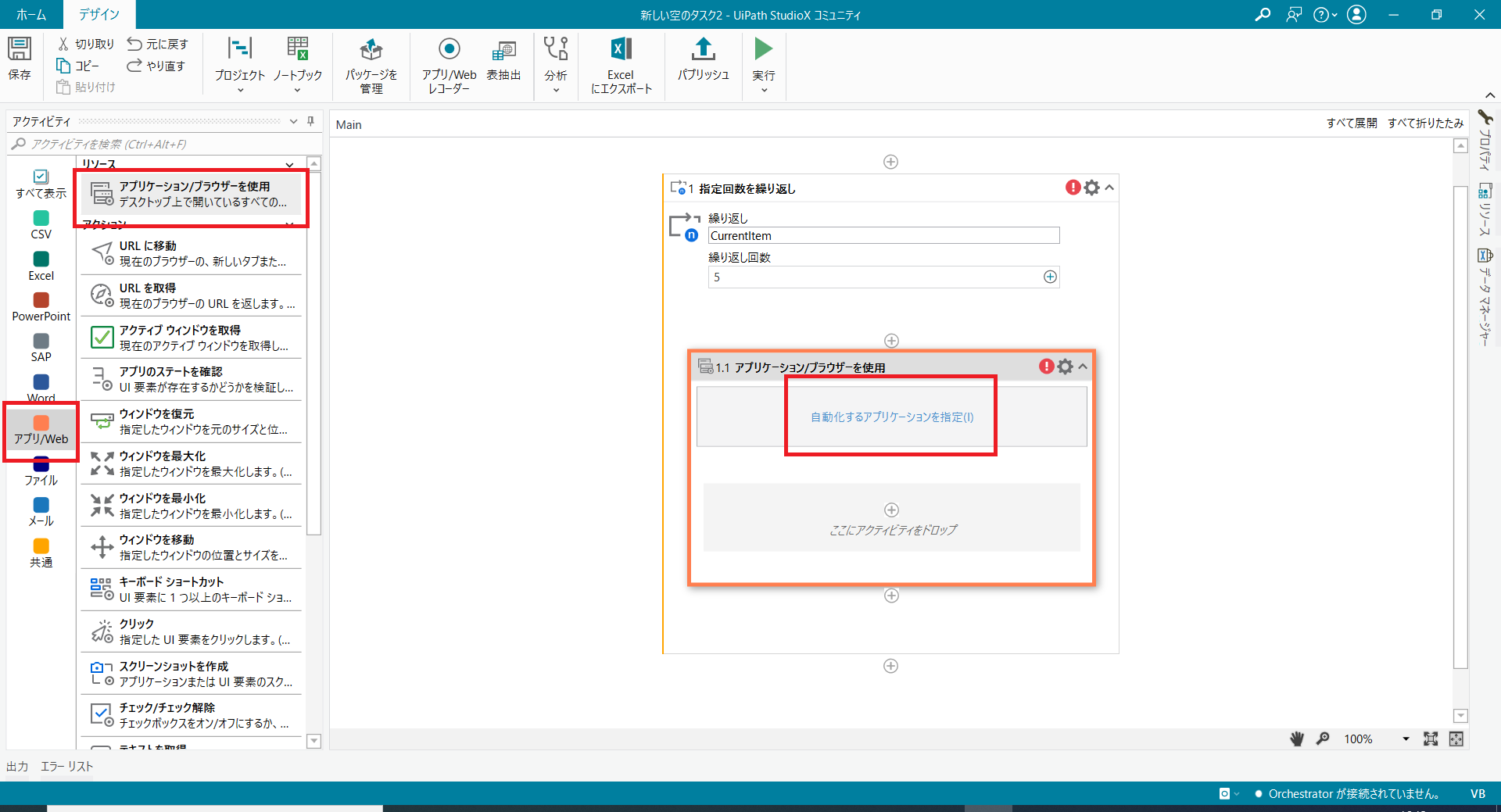 自動化するアプリを指定する