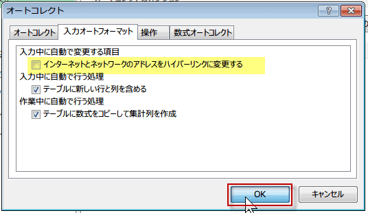いつも勝手にハイパーリンクが設定されて困っているのならば、この設定は不要なので、チェックをはずしましょう。