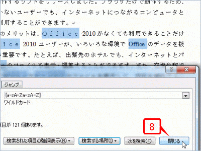 8.文書中の全角・半角のすべてのアルファベットが選択されたことを確認したら[閉じる]ボタン をクリックします。