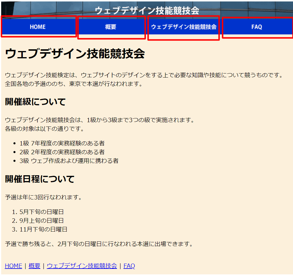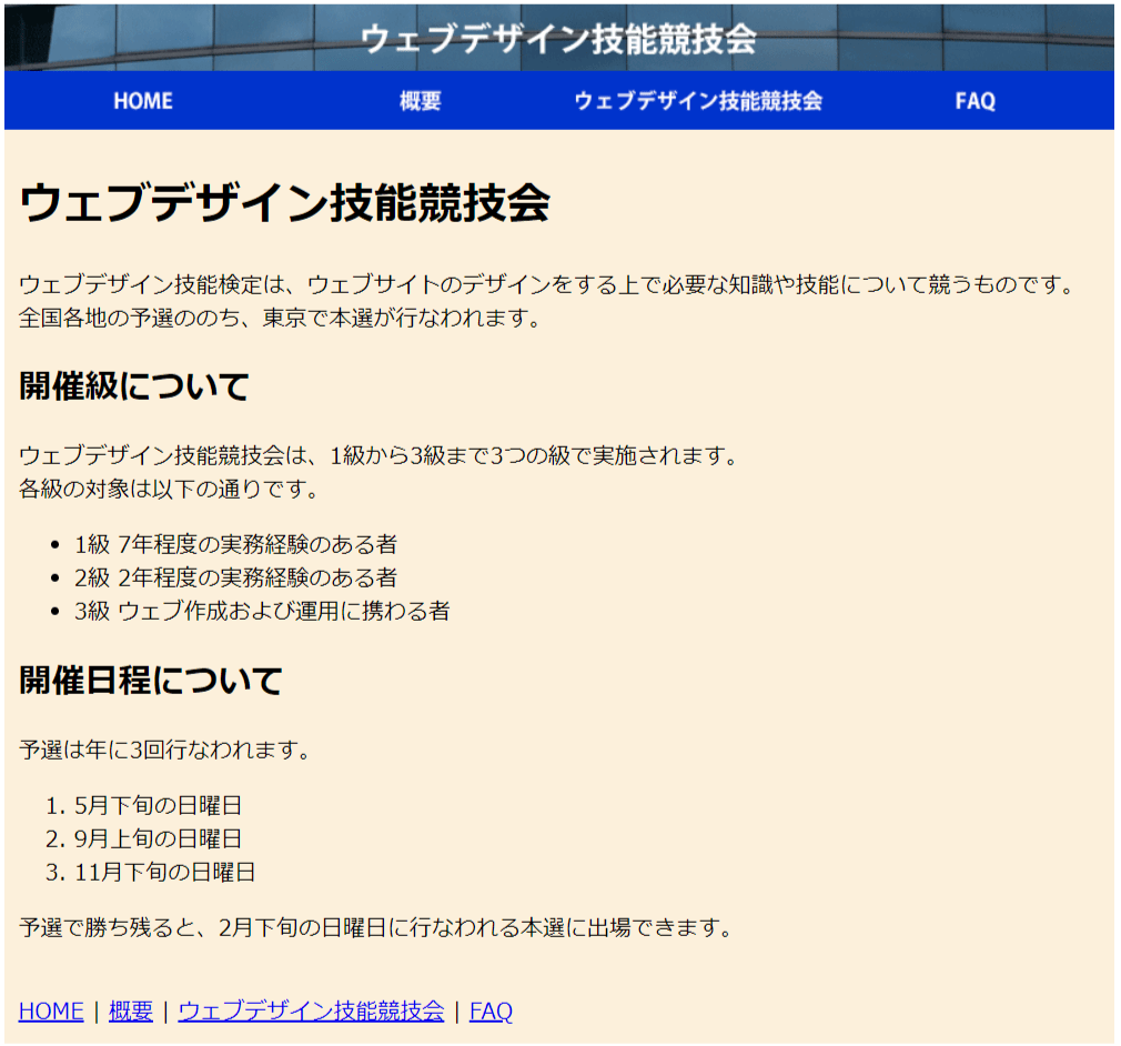 正直なところ、試験で問われている技術的な部分は、今ではHTML5+CSS3になり、新しくウェブサイトを作成する際は、同じような作り方をすることはほとんどないかと思います。