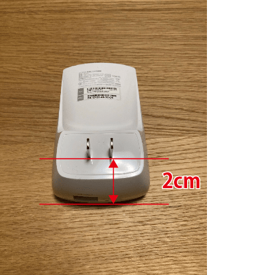 本稿で一番お伝えしたいことは、本器コンセント部から底辺までの長さです。長さは2cmです!