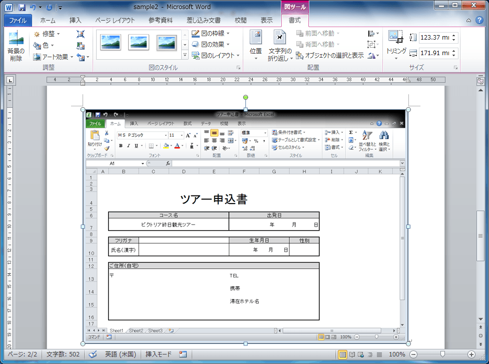 他のウィンドウまたはその一部分をスクリーンショットして図として挿入することができます。ただし、最小化されているウィンドウは対象になりません。
