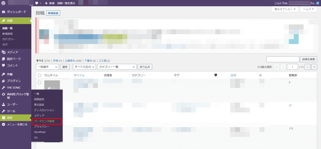 管理画面の設定からパーマリンク設定画面を開きます。