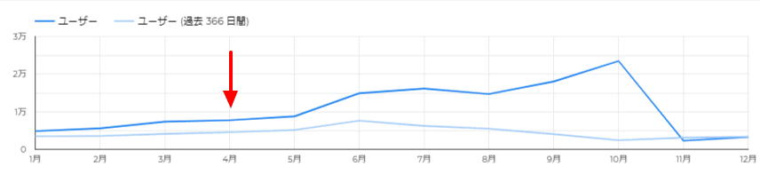 半年経過したGoogleアナリティクスの結果が、以下のグラフになります。